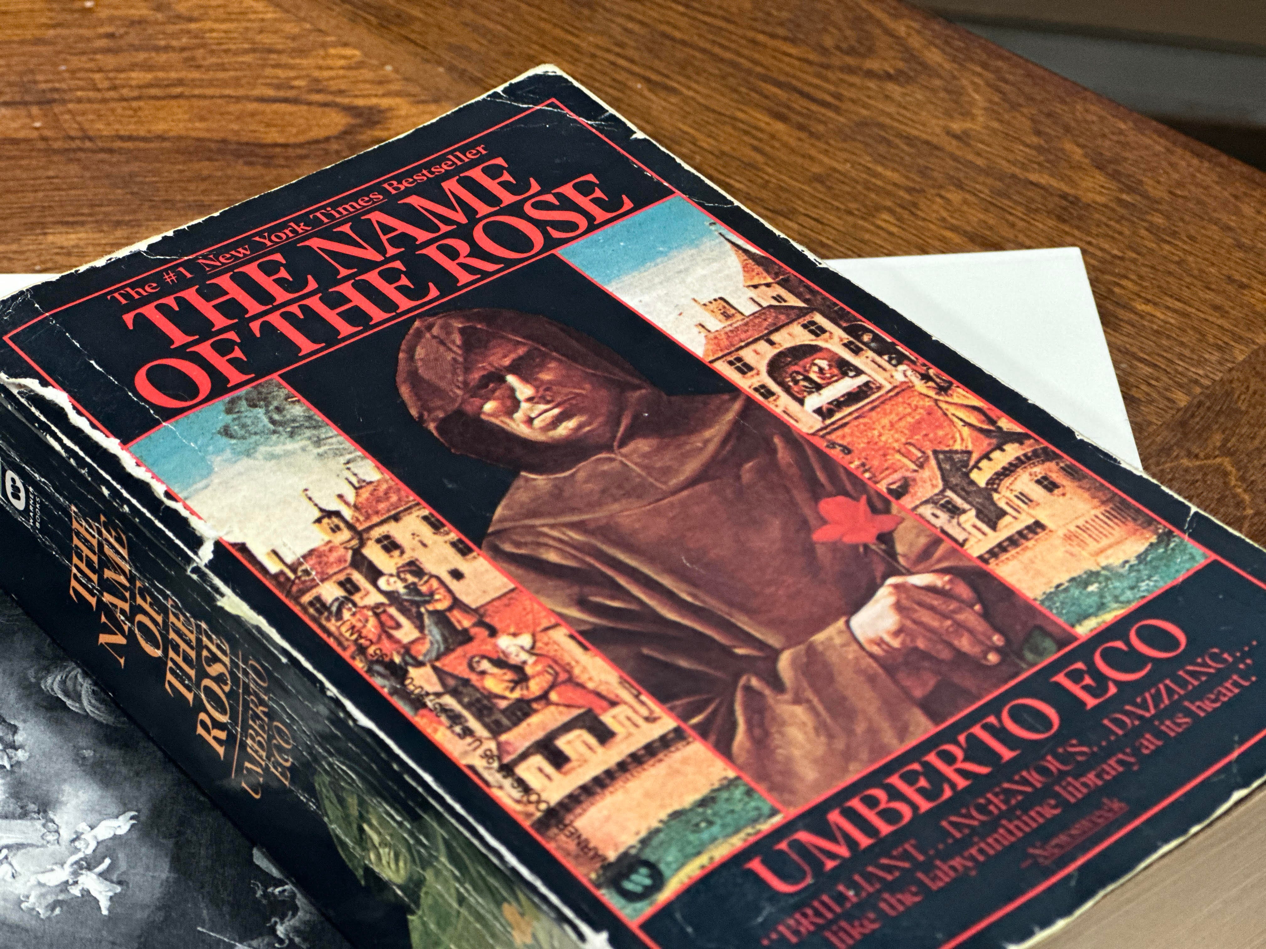 I am still working my way through Umberto Eco’s The Name of the Rose. The book reads like a medieval mystery wrapped in a theological cloak. A young novice, Adso of Melk, follows his mentor, the sharp-minded Franciscan William of Baskerville, into a Benedictine abbey where books whisper, monks hide secrets, and every hallway feels charged with the weight of centuries.